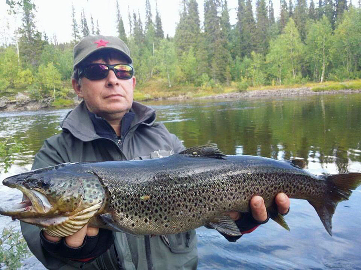 В лесу встречаются глухари, тетерева, северные олени, косули, россомахи, медведи, лоси, лисы, зайцы и рыси. Часть из них мне удалось повстречать. Но это не главное. Мы ездили на рыбалку. Температура ночью была в районе 5-8 градусов по Цельсию, а днем около 15 . Было безветренно и солнечно. Главной нашей целью была ручьевая форель. Она там достигает очень больших размеров, наш гид ловил раннее экземпляры до 8,5 кг. Она живет там в реках и озерах и нерестится в речках, которые можно перейти спокойно имея вейдерсы. Именно в этих речках мы и ловили. Форель ловилась на воблеры, колебалки и вращалки. Для каждой приманки нужен свой способ подачи. Воблеры кидаются против течения или под углом против течения и быстро твичатся . Блесна кидается во все стороны, но от направления движения зависит скорость движения блесны. Для поиска крупной форели лучше использовать воблеры и колебалки. Очень часто я наблюдал как форель преследовала приманки и не брала. Мне попадалась форель на более 3 кг. Вот на что я ловил: kosadaka mirage xs 70 f, tackle house buffet s65 , smith d-contact 63 и 72 . Лучшими блеснами были tiemco lightning wobbler 14 гр. Кроме того, в речках много хариуса. Самый крупный экземпляр был на 600 гр. Но там бывают экземпляры более 2 кг. Вращающаяся блесна является фаворитом при ловли этой рыбы, лучшая – Mepps black fury и dates silver creek. Обязательно на конце нитки должен быть флюорокарбон. На хариуса лучше использовать лайтовые снасти. На форель нужны снасти помощнее. У хариуса белое некостлявое мясо. Мы его жарили. Кроме того, если взять лимон, чуть-чуть соли и филе и подержать пол часа, то получается великолепная холодная закуска. У всей форели было жирное красное мясо, которое намного приятнее кушать в любом виде, чем мясо искусственно выращенных семги или радужной форели. Но самое главное – в ней была красная икра. Мне только треть удалось привезти домой. Почти все съели там. Но я привез еще 8 кг филе форели. Один день мы посвятили озёрной рыбалке. В озере ловилась, правда плохо, щука и окунь, по окуню у меня рекорд был 550 гр. А щука была поймала на 3400 гр на воблеры, на которые и у нас ловятся щуки и окуня. Там реально поймать щуку за десятку, а окуня в районе килограмма. Там этой рыбой никто не питается и считают ее сонной. Там и грибы никто кроме наших туристов не собирает. Было три схода щук за 6 кг в зарослях водных растений на крупный силикон на оффсетных крючках. Собираюсь в следующем году еще три раза посетить эти места. Зимой ожидается рыбалка на налима и гольца в палатке под северным сиянием. В июне целью поездки будет дикая семга, голец и хариус и конец августа – крупная икряная ручьевая форель”.